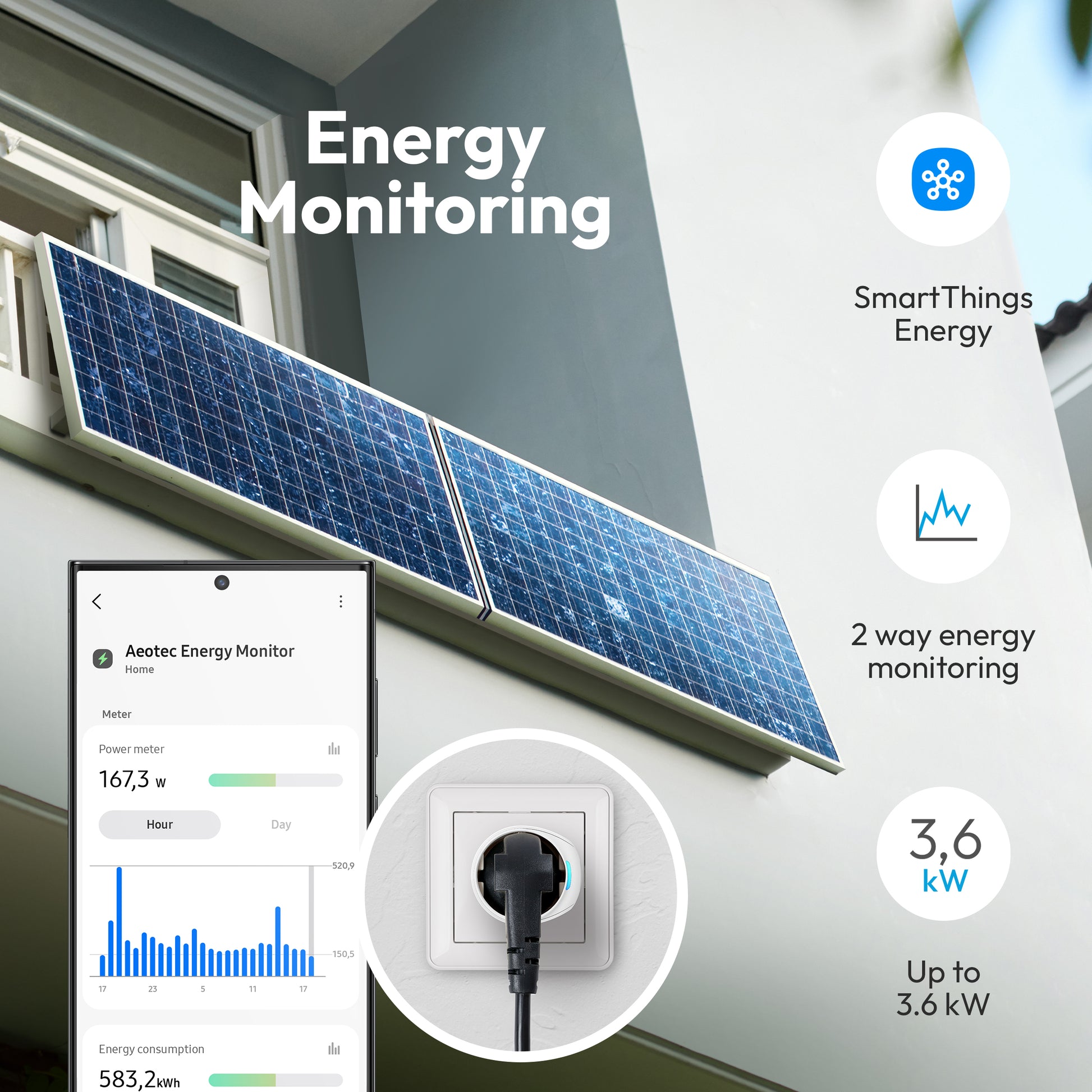 Energy Monitoring: Provides real-time and historical data on the power consumption in Watts and kWh (kilowatt-hours) via the SmartThings app. This feature is key for monitoring usage and saving energy.