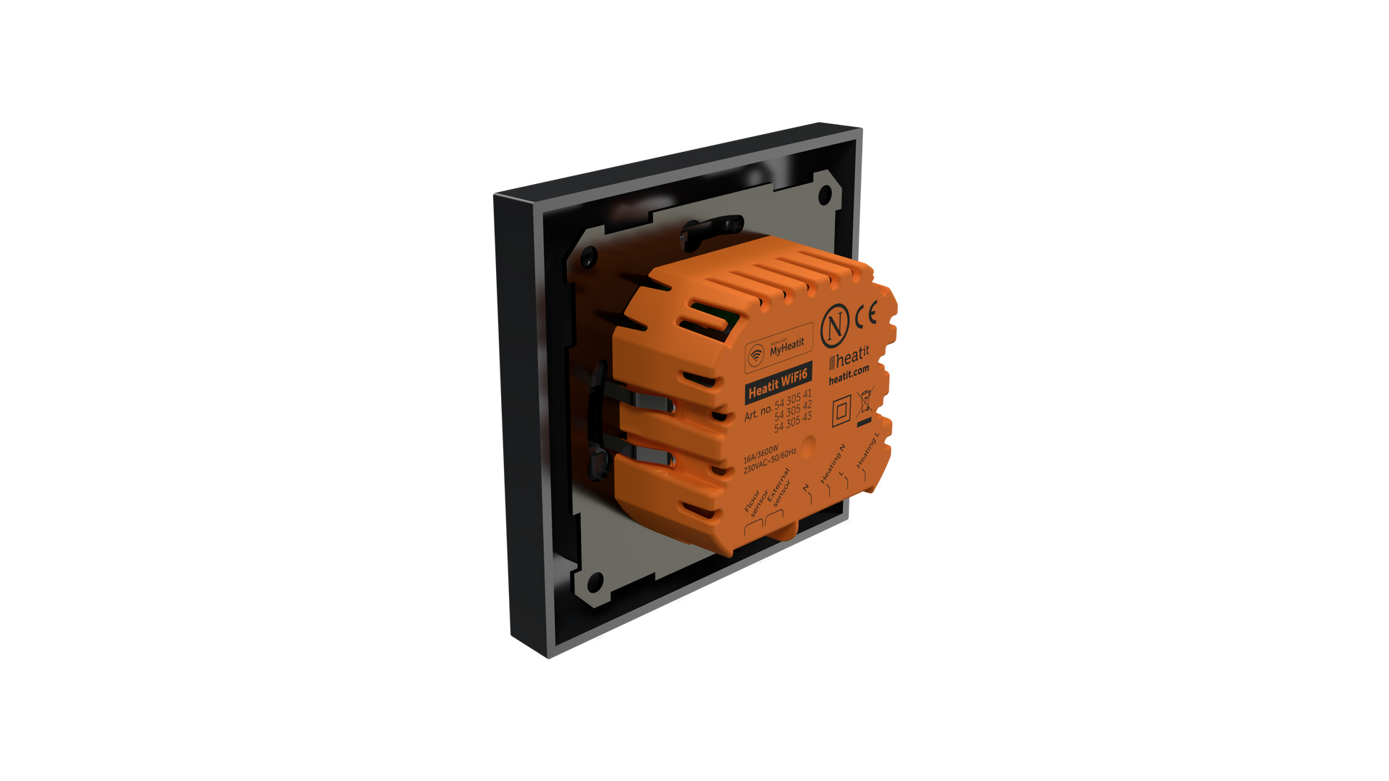 The Heatit WiFi6 Thermostat is a cutting-edge electronic thermostat designed for highly efficient control of both electrical underfloor heating and water-based heating systems. Featuring a user-friendly interface with an easy-to-read LCD display and capacitive buttons, it offers intuitive local operation. Its robust connectivity is based on Wi-Fi (2.4 GHz) and Bluetooth Low Energy (BLE), allowing for seamless configuration and control via the dedicated MyHeatit App. Built with a sturdy metal frame, this thermostat is engineered for secure installation in standard European junction boxes and is compatible with most System 55 frames, offering a modern and durable solution for your home's climate control.
